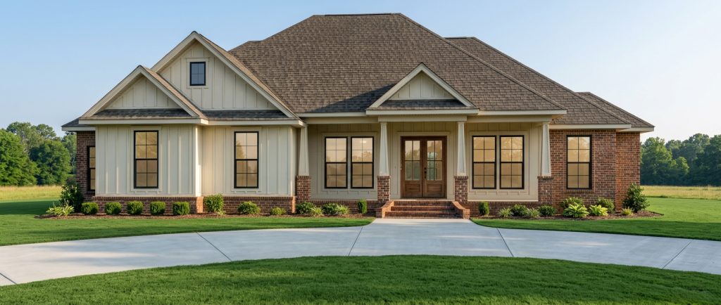 Using AI, we transformed that same image into a vibrant summer version. The composition, home, and perspective stayed the same, but the environment became greener, warmer, and more polished. The result is a stronger visual that better reflects the quality of the project.